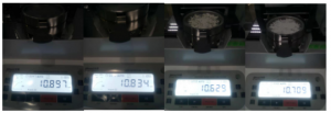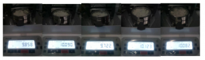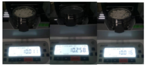 - 將防風(fēng)盤(pán)、支架、樣品盤(pán)一一裝好,接通電源,按下開(kāi)機鍵,顯示屏進(jìn)入開(kāi)機界面,首先按去皮鍵減去樣品盤(pán)重量,后將100g砝碼放入托盤(pán)進(jìn)行校準;