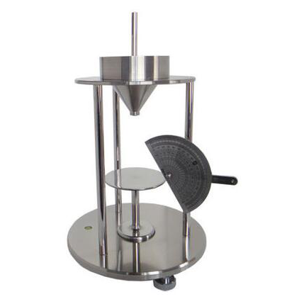 SK-16913型注入限定底面法安息角測試計是廈門(mén)群隆儀器有限公司依據國家標準GB/T 16913.5-1997(本標準參照采用ISO 4324:1997粉狀和粒狀表面活性劑——粉體和顆?!葜菇堑臏y定)的規定設計、生產(chǎn)。本裝置適用的測定對象是粉塵,采用注入限定底面法測定粉塵安息角,與ISO 4324:1997的主要技術(shù)差異是不測量堆積在限定底面上的粉塵高度而采用量角器直接測定粉塵安息角。